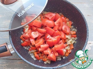 Обжаривать овощи до мягкости. Затем добавить нарезанные помидоры, соевый соус и сахар.