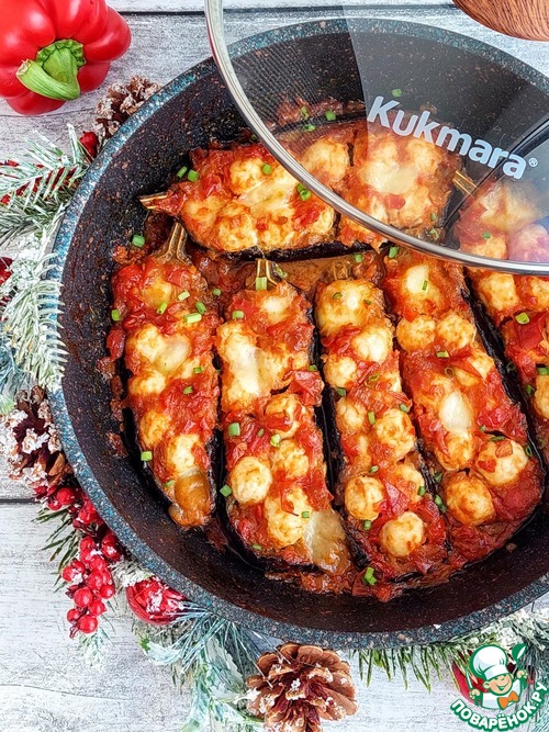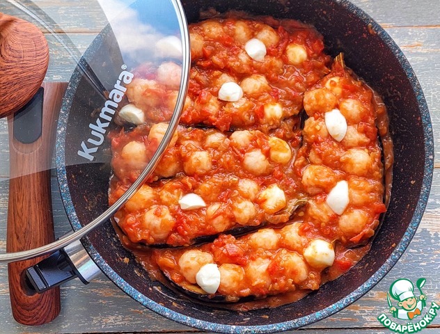 Рецепт «Баклажаны с куриными шариками в соусе»: