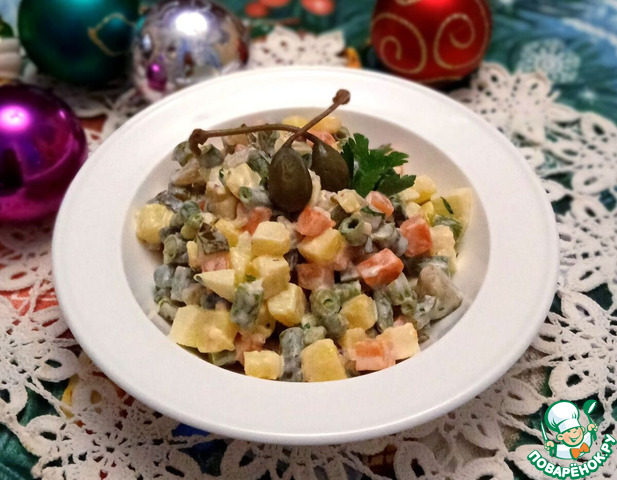 Вегетарианский салат "Оливье" со стручковой фасолью