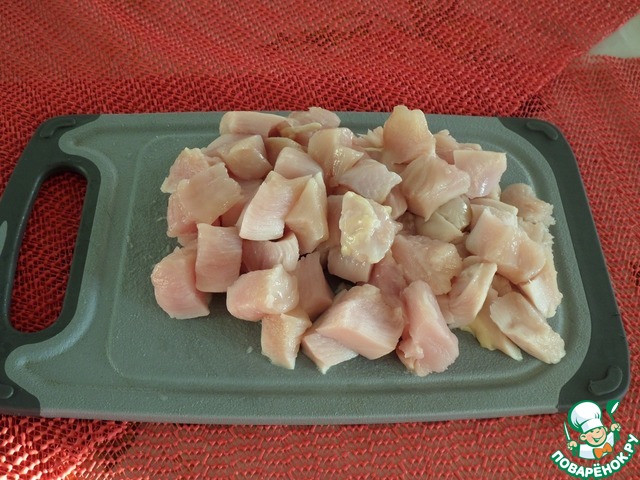 Пока готовятся мясо и овощи, кубиком нарезаем очищенный картофель.