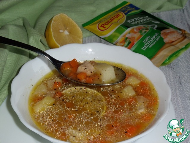 Очень люблю супы! Особенно те, которые готовятся быстро и просто. Этот суп как раз из данной категории. Особый вкус и аромат придает "Куриный Домашний" бульон ТМ "Роллтон".