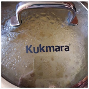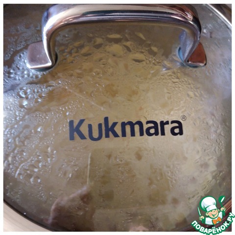 Я буду варить рис для салата, используя кастрюлю от Kukmara серии "Leon". Она с толстым дном и стенками. Дно равномерно распределяет тепло. Рис в ней отлично приготовится. Кроме того, внутри кастрюли есть мерная шкала, что тоже очень удобно.