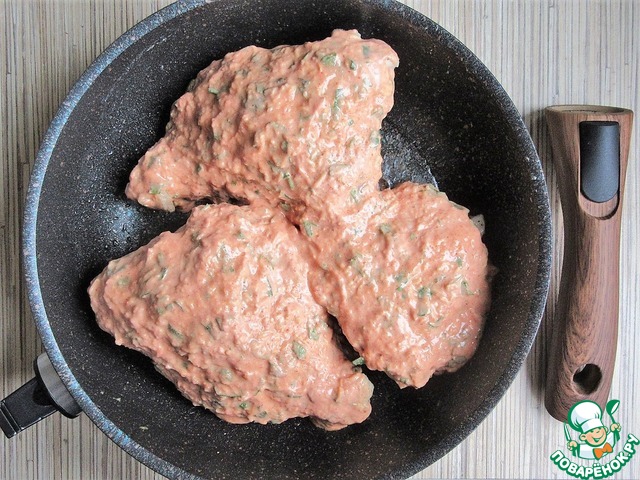 Затем смазать сверху подготовленной смесью. Снять ручку со сковороды.