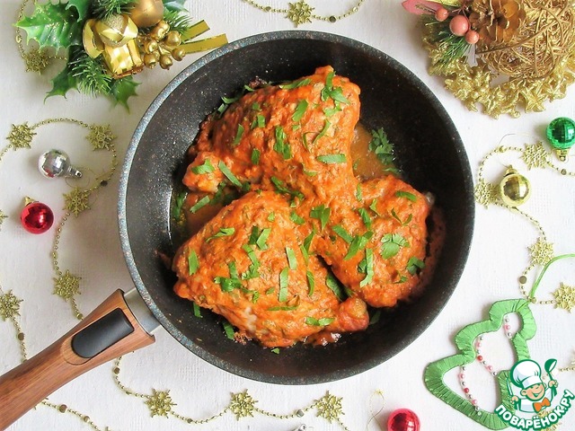 Рецепт «Куриные бедра под пикантной сырной шапочкой»: