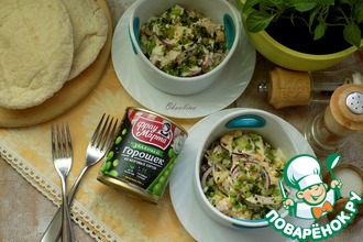 Варено-копченые колбаски снэки из индейки ТМ Индилайт тут главный ингредиент. Они придают вкус копчености салату.