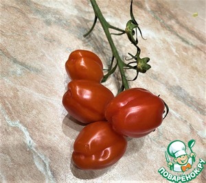 И так берем свои любимые помидоры черри. Нарезаем их на 4 части. Если помидорки очень маленькие то можно на 2, но тогда их количество увеличить в 2 раза