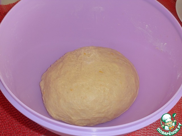Замешиваем тесто. Смазываем тесто растительным маслом. Накрываем миску крышкой и оставляем на 1 час в теплом месте.