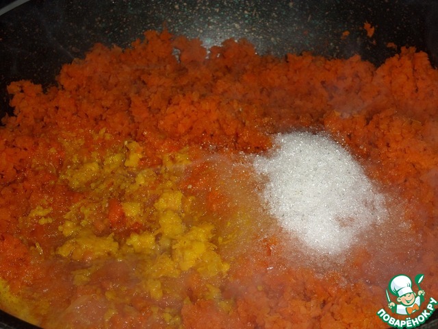 Морковь пропускаем через мясорубку (я использовала самую мелкую решетку) или трем на терке, или же измельчаем в кухонном комбайне.