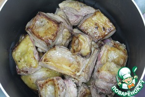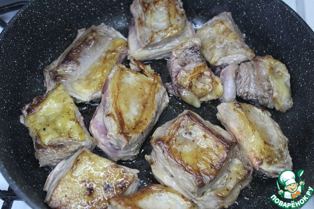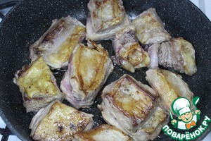 Обжарить ребра порциями на смеси растительного и сливочного масел.