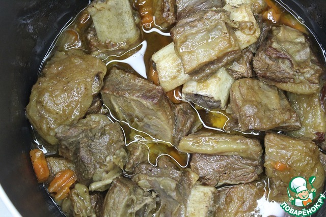 Накрываем кастрюлю крышкой и оставляем томится на небольшом огне 3 часа.