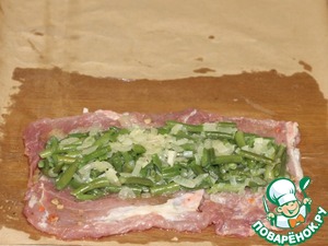 10. Бумагу для выпечки смазываем чесночным маринадом, там, где будет мясо.