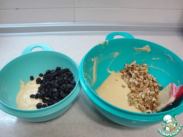 В одну часть теста всыпать промытый и обсушенный изюм.