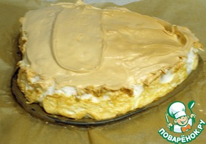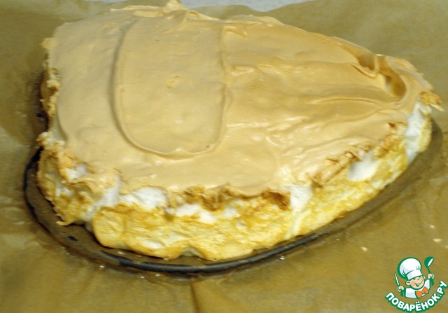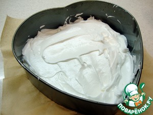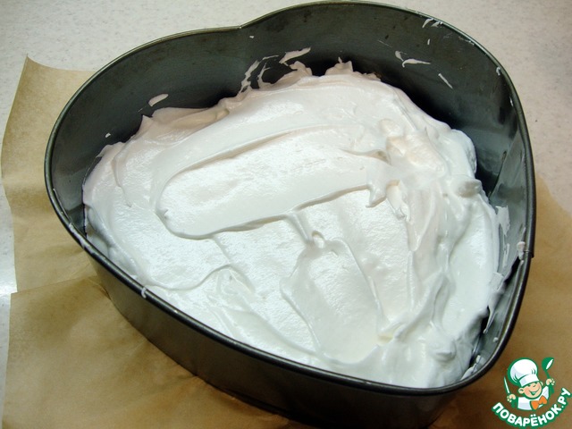 Бумагу для выпечки смазать маслом и выложить на неё белковый корж.