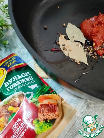 • По истечении времени в кастрюлю введите зажаренную томатную пасту...