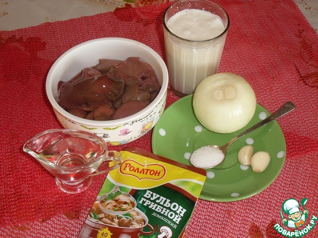 Ингредиенты для «Куриная печень в сливочно-грибном соусе»:
