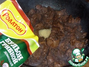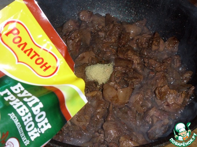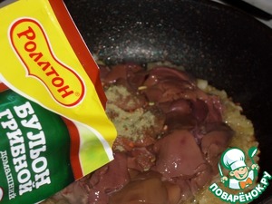 • Затем добавляем куриную печень и 1 ч. л. бульона "Грибной домашний" ТМ "Роллтон".