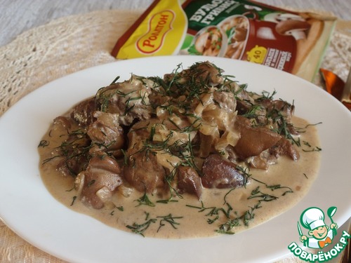 Рецепт «Куриная печень в сливочно-грибном соусе»:
