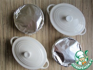 Формочки накрыть крышечками, если есть, или запечатать фольгой.