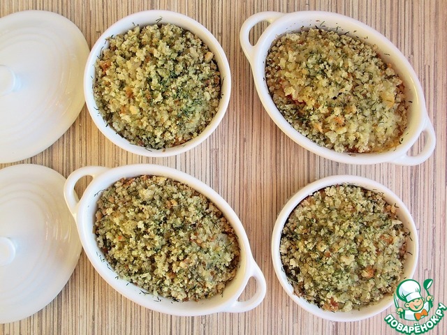 Разложить по 4-6 смазанным маслом маленьким формочкам или рамекинам.