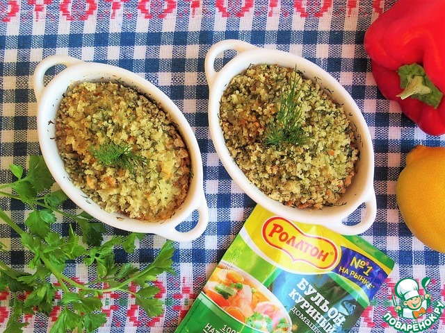 Духовку разогреть до 200*С. Икру промыть, освободить от пленок, добавить 1 ч. л. куриного бульона ТМ Роллтон. Перемешать.