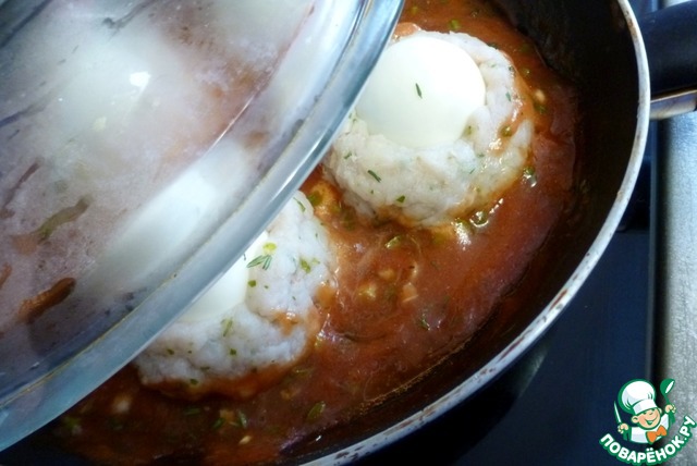 Отправить котлеты в томатный соус. Они должны быть погружены в соус до половины.