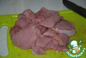 • Нарезать индейку небольшими кусочками шириной 0,7- 1 см