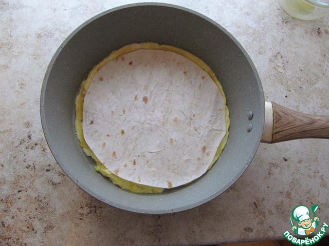 • Перевернуть омлет лавашом вниз.