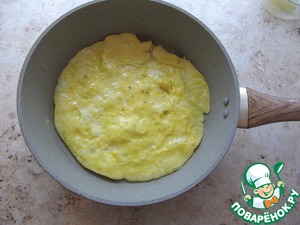 • На разогретую с маслом сковородку вылить яичную смесь.