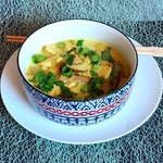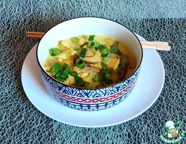 Если вы любите сытные супы это ваш вариант. Сытный, горячий, густой и пряный суп в азиатсом стиле согреет зимними вечерами. Рецепт этого супа нашла на иностранном сайте, очень уж он показался мне необычным. Вкус орехово- сливочный с пикантной остринкой покорил всех моих домочадцев. Для насыщенного яркого вкуса использую куриный бульон "Ролтон". Яичная лапша для супа той же марки. Она хорошо впитывает в себя ароматы, вкусы и не разваривается.