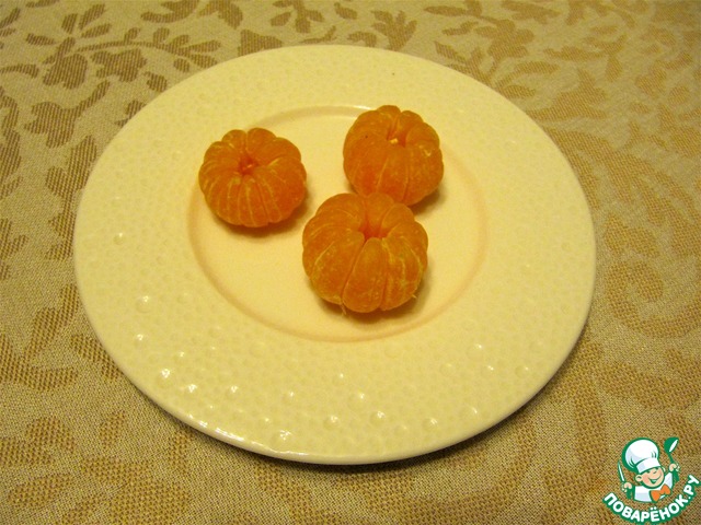 • Мандарины использовать очень мелкие и сладкие, очистить от кожуры и волокон, нарезать поперек кольцами.