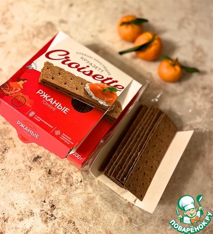 • Для приготовления десертной закуски использую тонкие ржаные цельно зерновые хлебцы "Kruazett".
