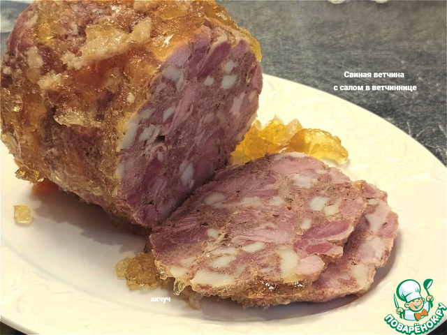 Рецепт «Свиная ветчина с салом в ветчиннице»: