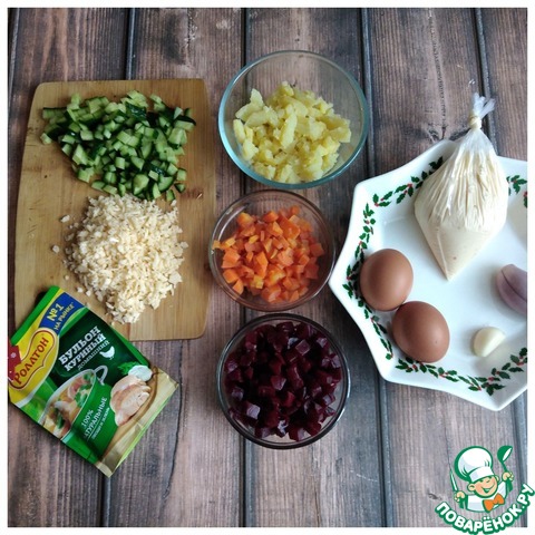 Ингредиенты для «Слоёный салат "Новогодний"»: