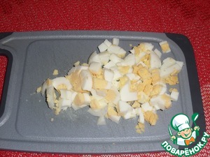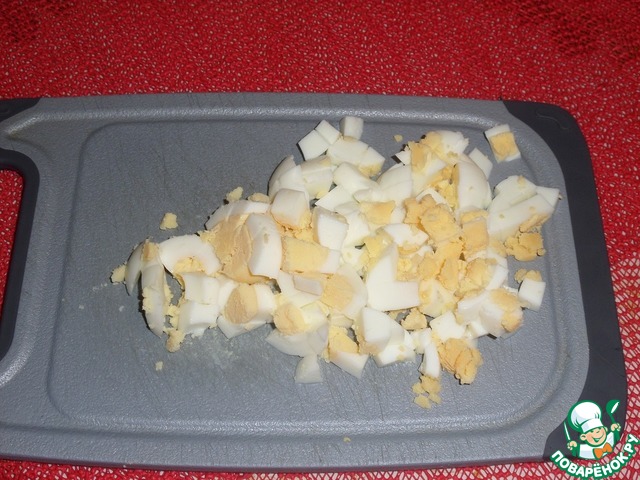 Подготовим продукты. Яйцо варим в подсоленной воде, остужаем и очищаем.