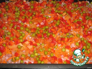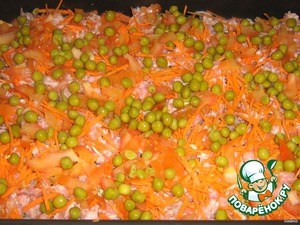 Остатки горошка тоже пойдут в дело, равномерненько рассыпать.
