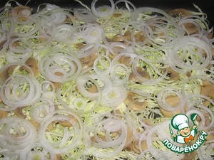 Следом кладем шампиньоны.