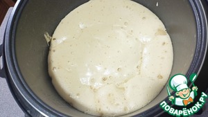 Смазываем борта и дно чаши маслом, и начинаем выкладывать тесто. Выкладываем примерно 70-80%, после чего делаем слой груш. Закрываем оставшимся тестом — Режим «Выпечка» 60 минут.