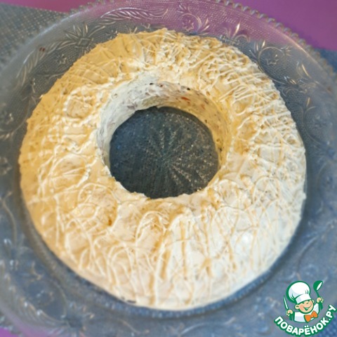 Распределяем измельченный грецкий орех, предварительно его надо подсушить.