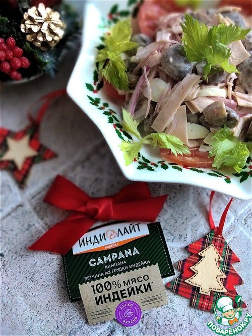 Новогодний салат с ветчиной