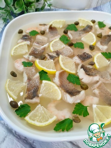 Заливное из судака и креветок