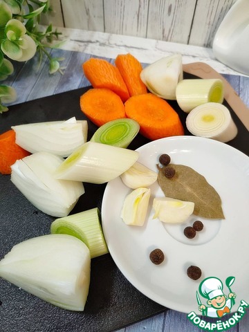 - Лук-порей (белая часть) — 1 шт