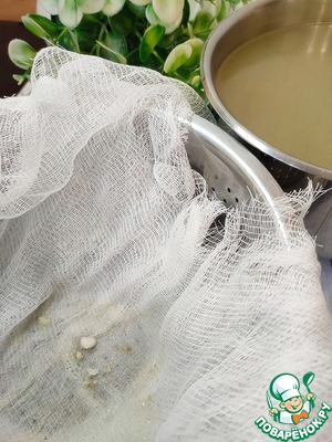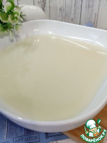 Аккуратно влейте 3-4 половника бульона с желатином. Блюдо верните в холодильник, примерно на 15 минут.