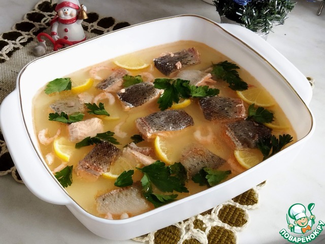 Рецепт «Заливное из судака и креветок»: