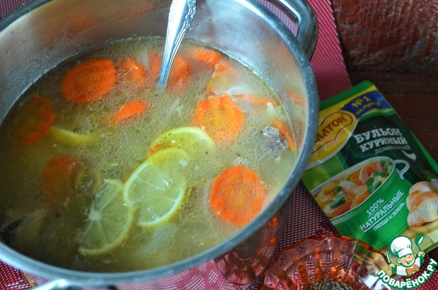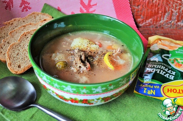 Добавить в суп лимон и оливки.