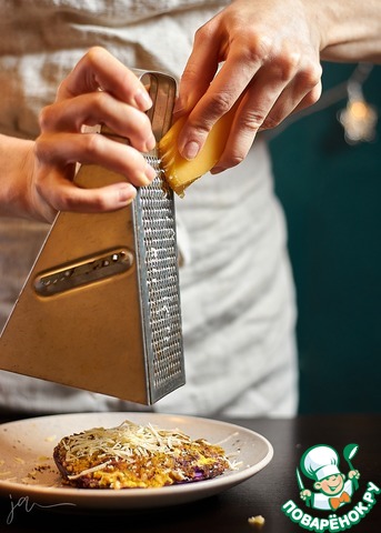 Горячий шницель посыпьте любимым тертым сыром.