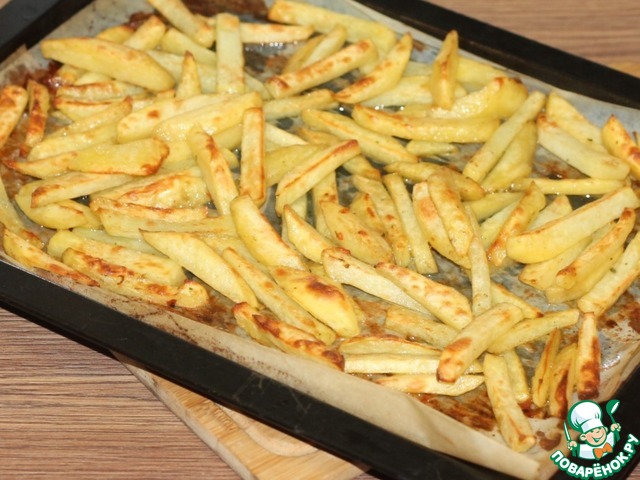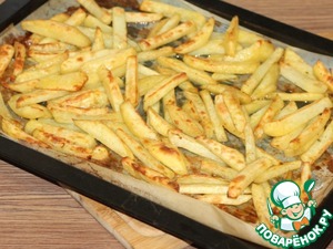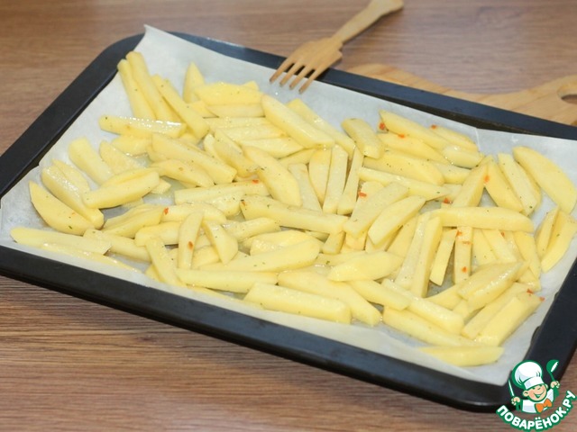 5. Положите пекарскую бумагу на противень и переложите картофель. Запекайте картофель минут 20-25 и не забывайте перемешать.