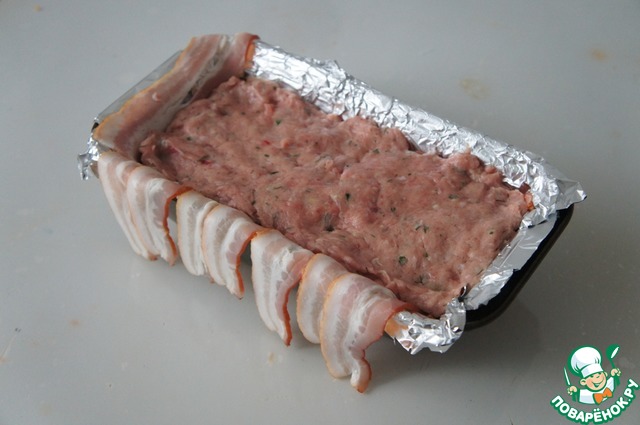 • Выложить вторую часть фарша, прижать рукой, чтобы было меньше пустот.