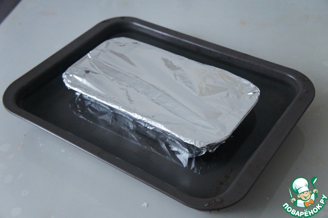 Затем остудить, жидкость слить. Снова накрыть фольгой, положить груз, например, литровую бутылку с водой и убрать на холод.
