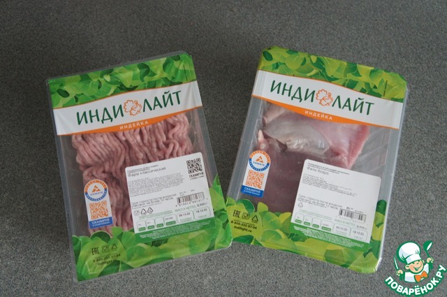 • Для рецепта используются 2 вида индейки: фарш классический и филе бедра.