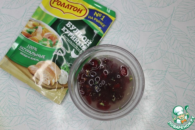 Клюкву залить 1 ст л горячего бульона из-под филе.
